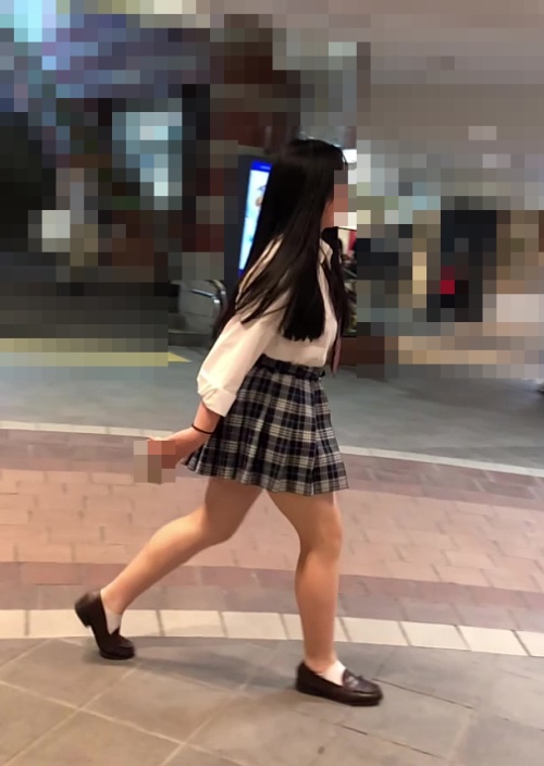 前方からムチムチのJKが!!